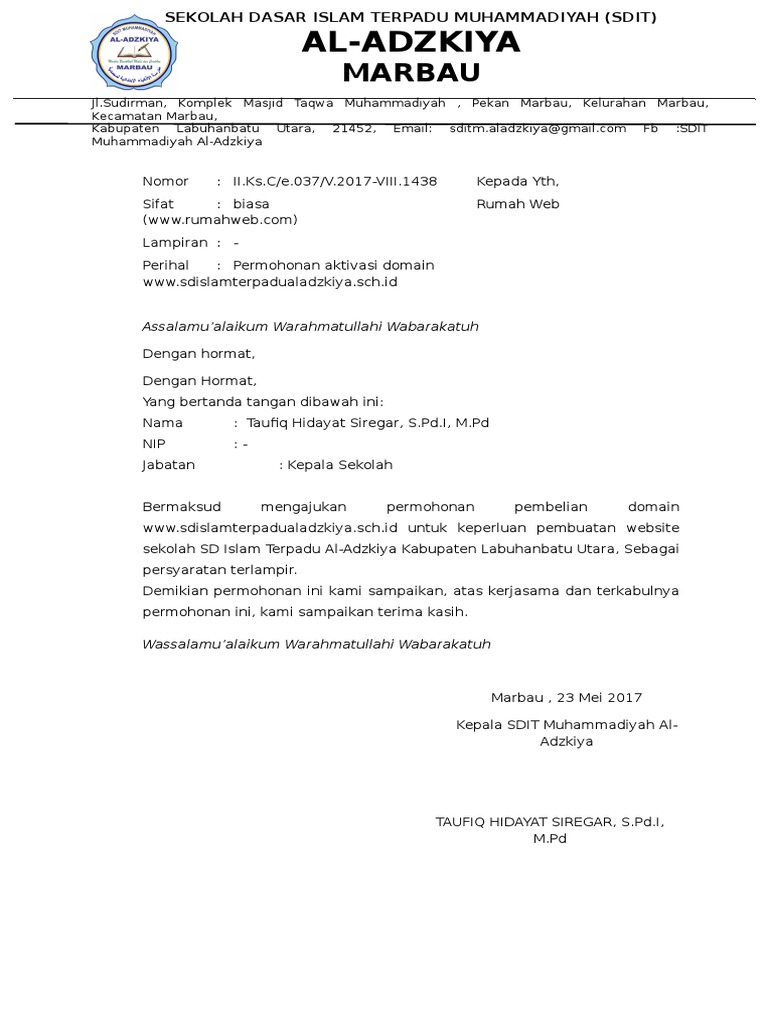 Contoh Surat Pendaftaran Domain Resmi Sekolah