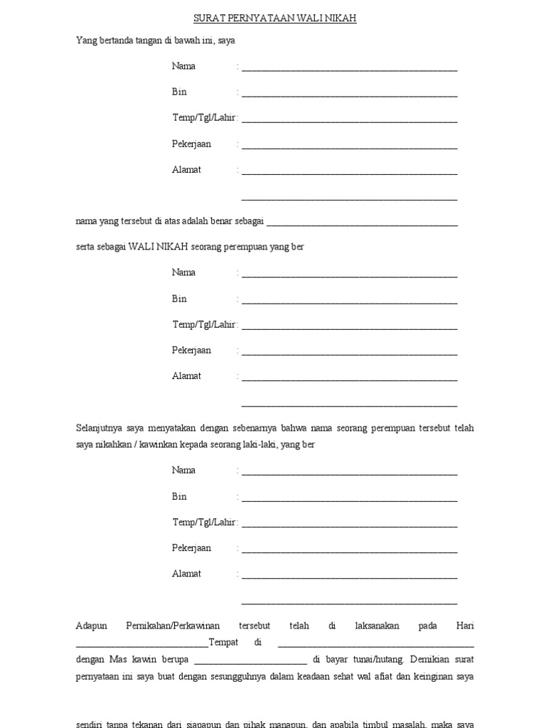 Doc Form Surat Keterangan Wali Nikah Ferry Wan Fandy Academia Edu